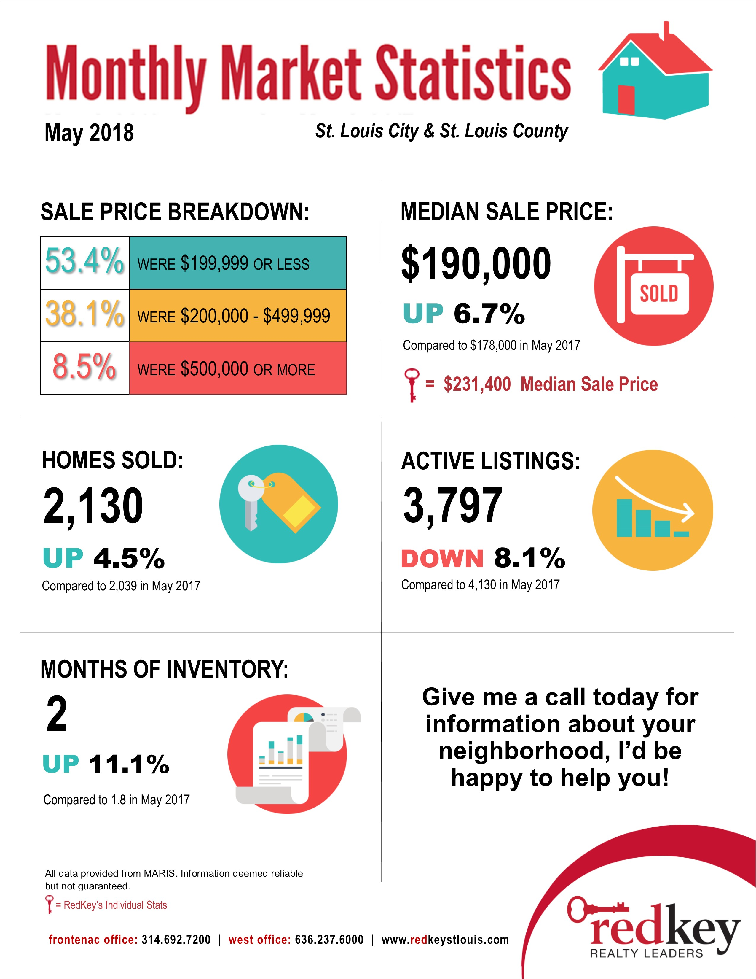 Median sale prices in St. Louis are up 6.7% as compared to May of last year. Additionally, We have seen a 4.5% increase in home sales, and 8.1% fewer homes on the market.