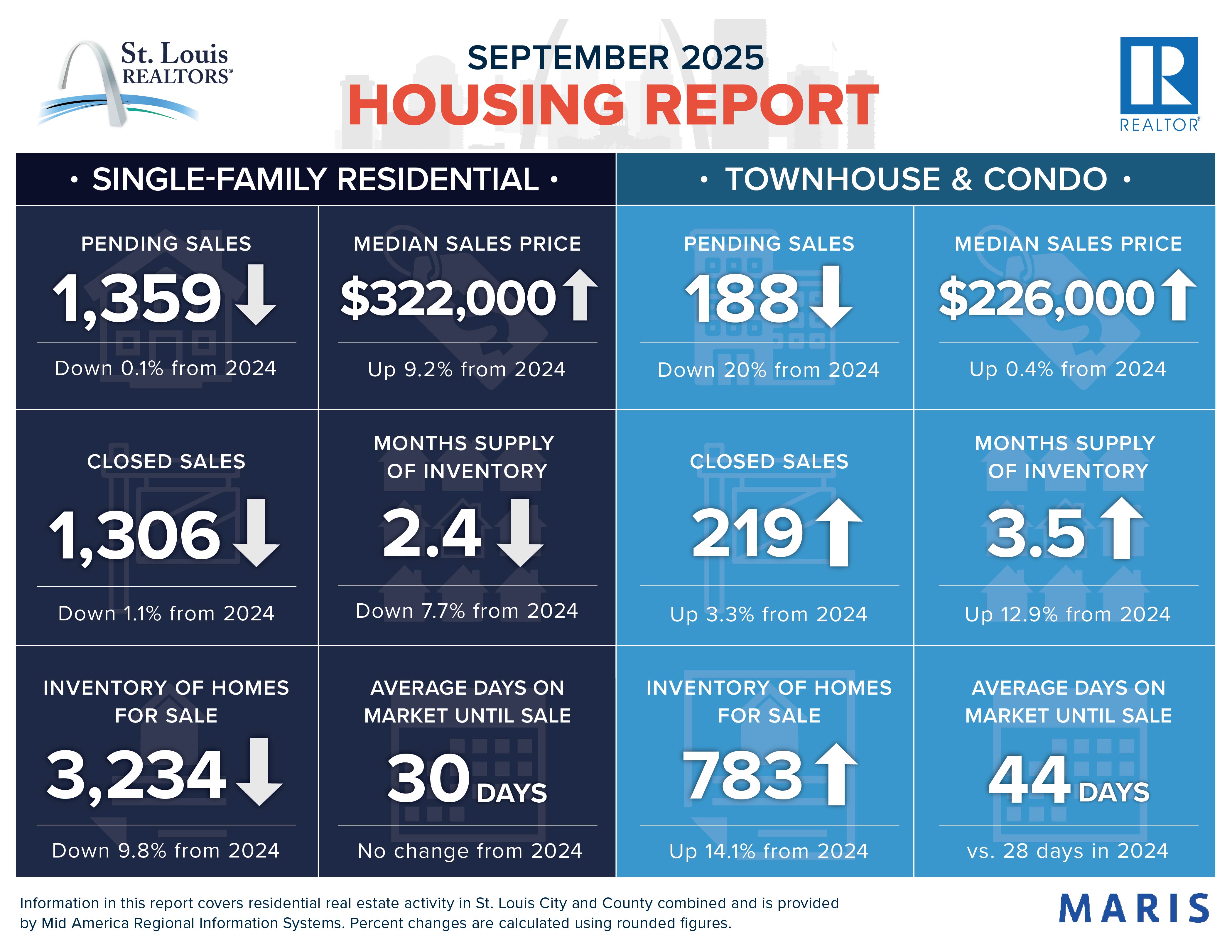 Median sales price increased 9.2% to $322,000 for residential homes and 0.4% to $226,000 for townhouse/condo homes. Days on market remained flat for residential homes but increased 57.1% for townhouse/condo properties. Months supply of inventory decreased 7.7% for residential homes but increased 12.9% for townhouse/condo homes.